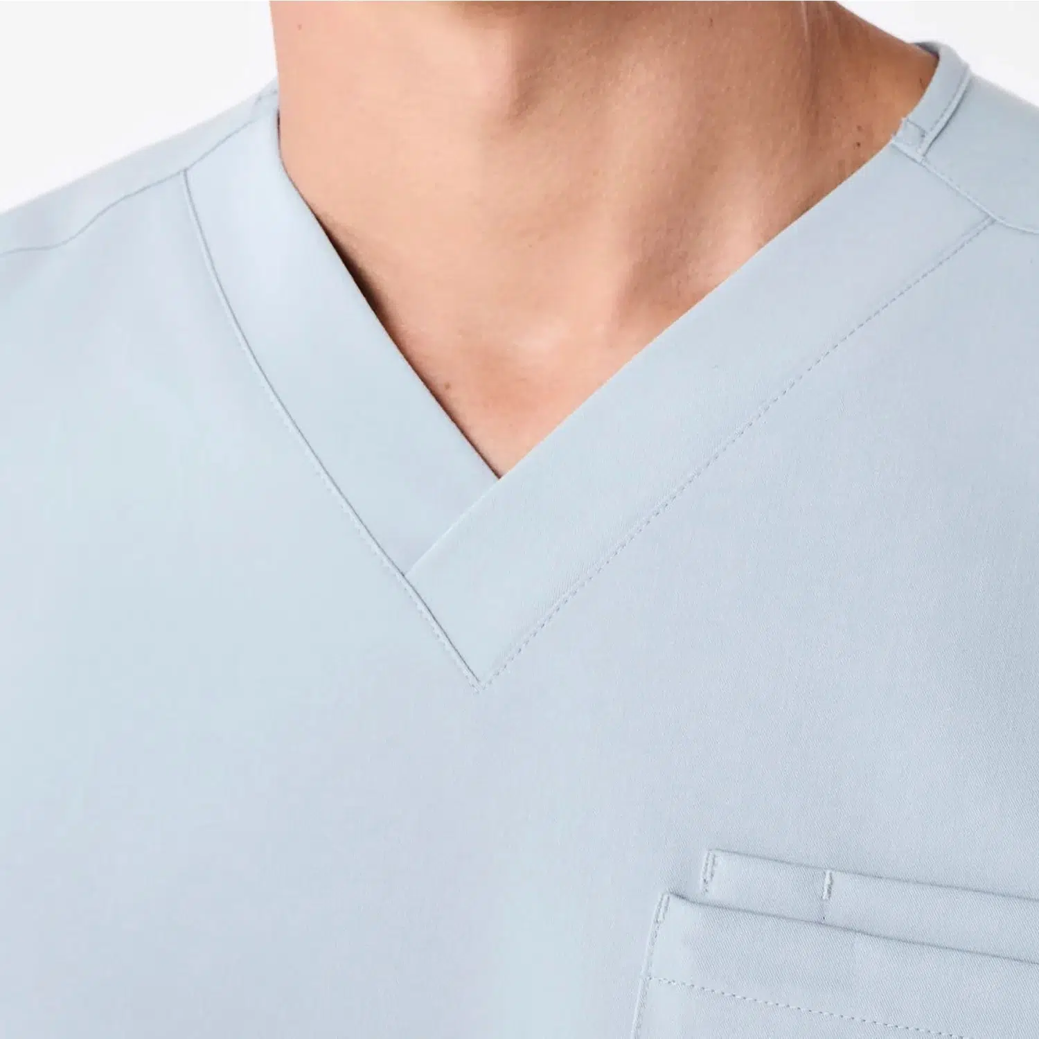 Medical scrubs with one chest pocket for small items.