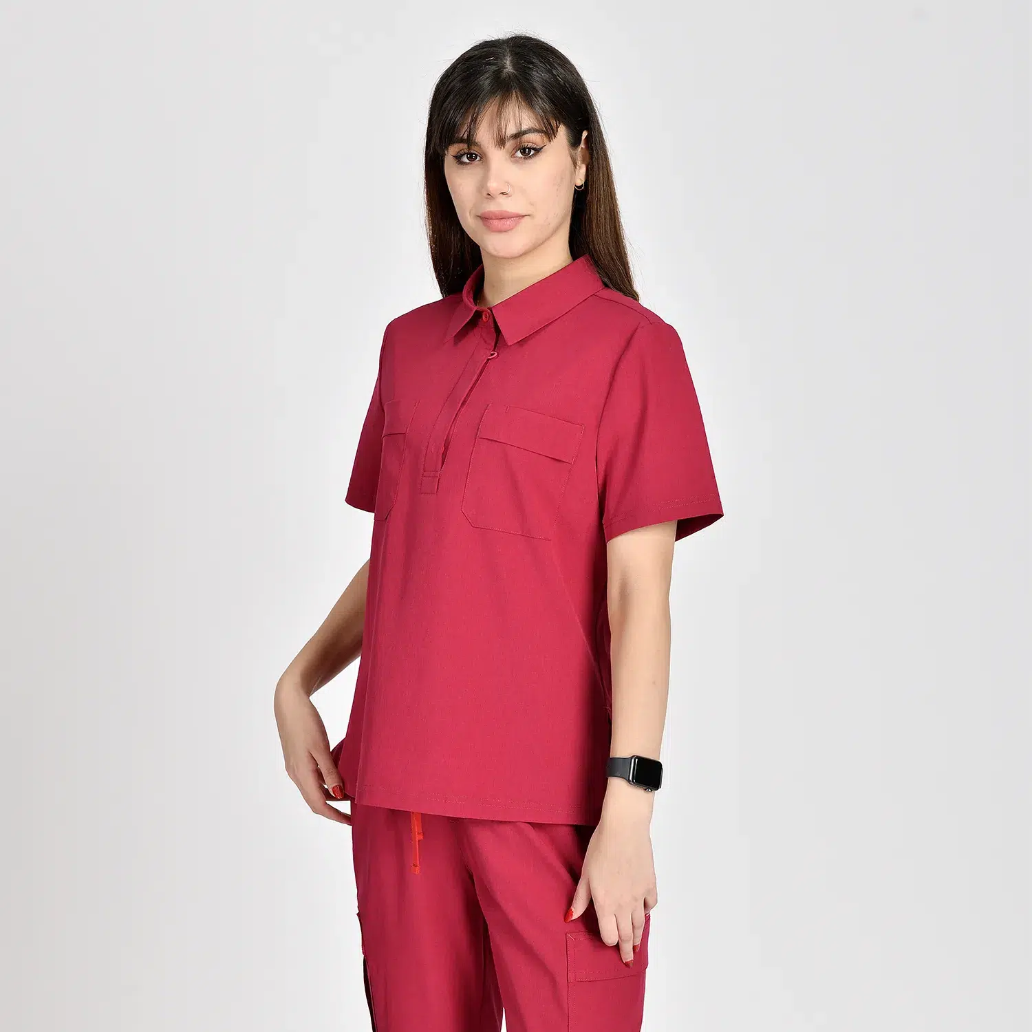Medical scrubs feature 2 chest pockets for small essentials, short sleeves, and a classic polo collar for easy movement during shifts.