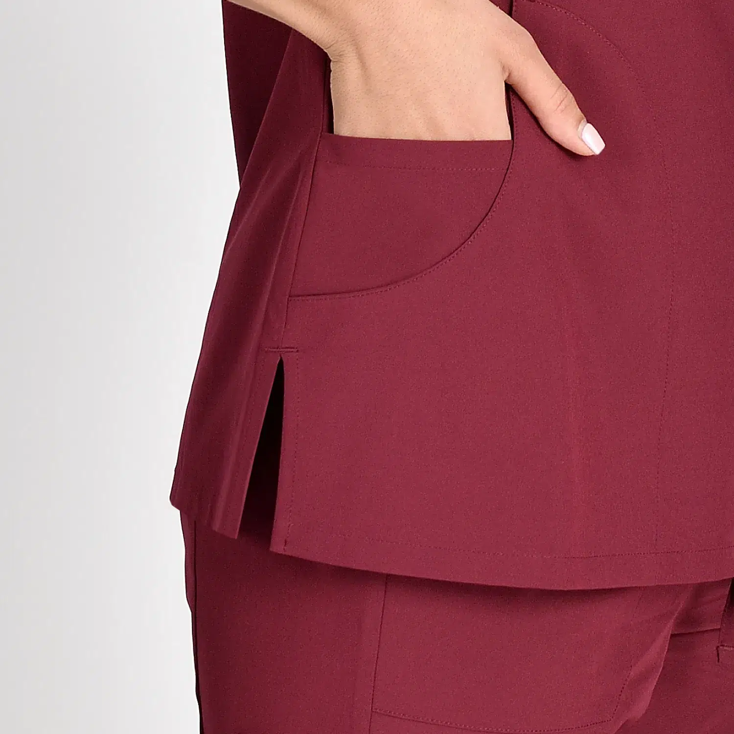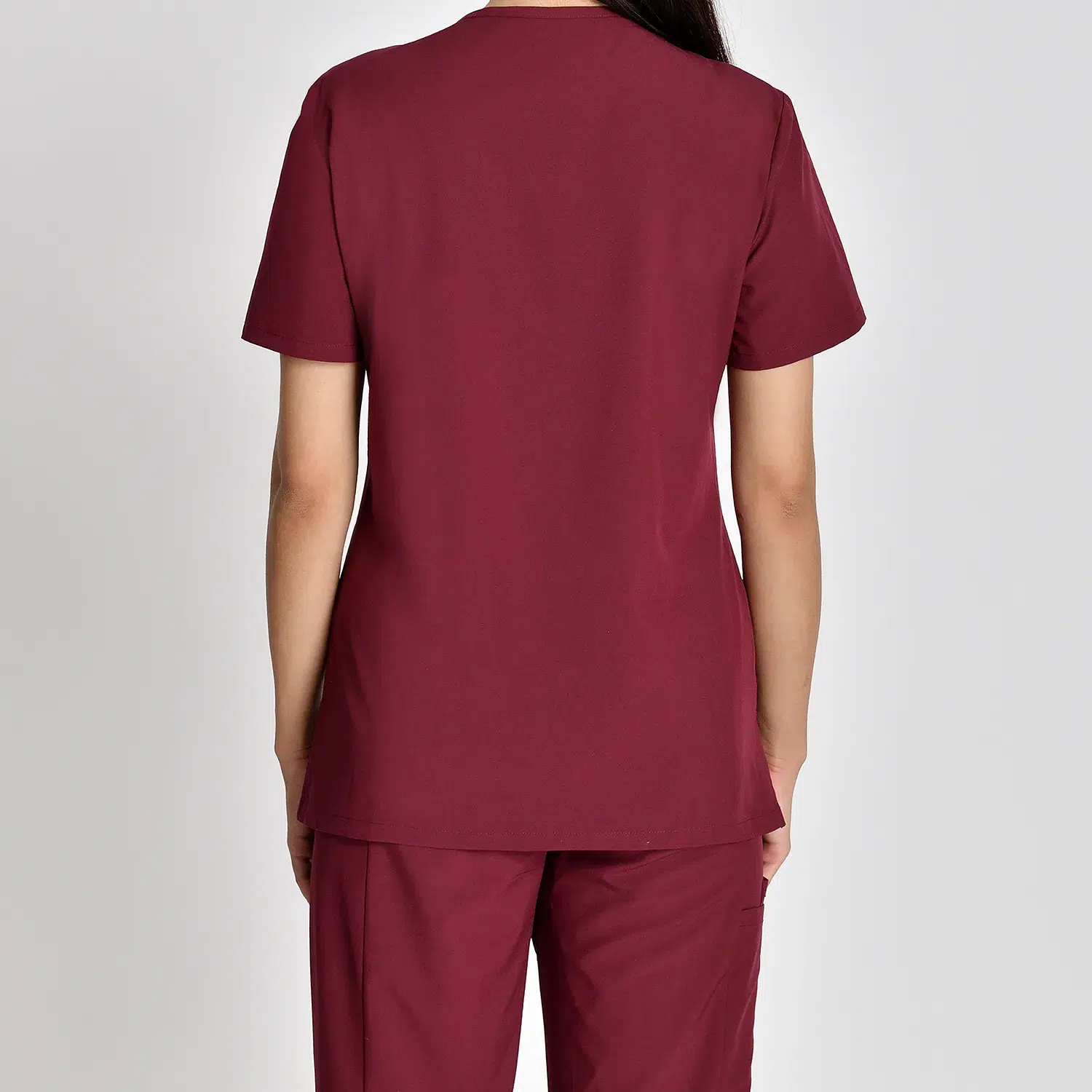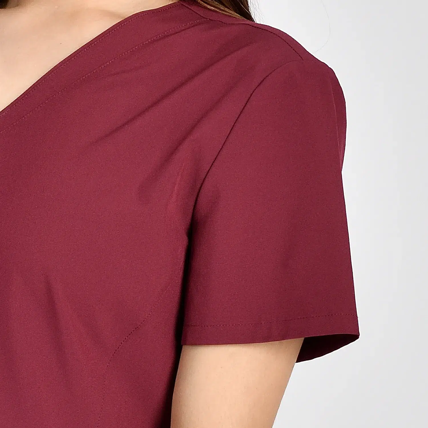 Custom Fashion Women V Neck Medical Scrubs Top with Functional Pockets