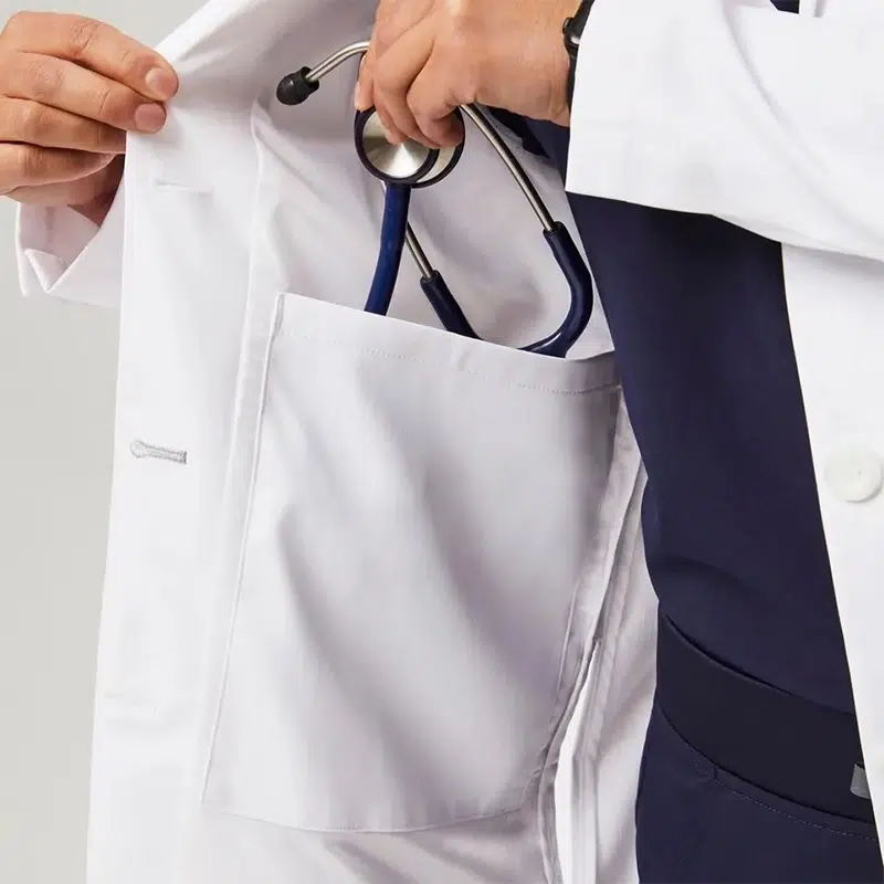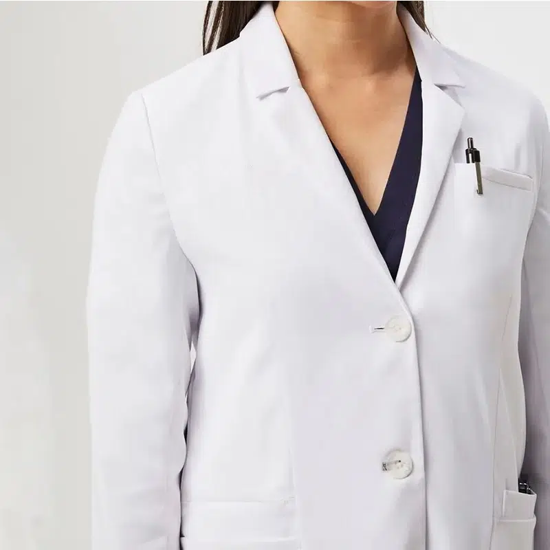 2. White coats are commonly used high-performance fabrics, focusing on antimicrobial and comfort.